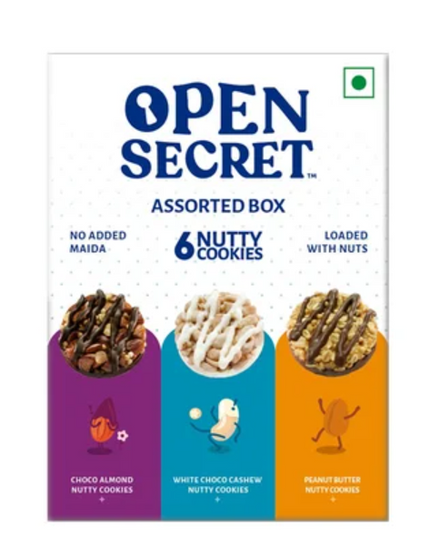Open Secret Assorted Chocolate Cookies - Choco Almonds, White Choco Cashews & Peanuts Butter - 75GM