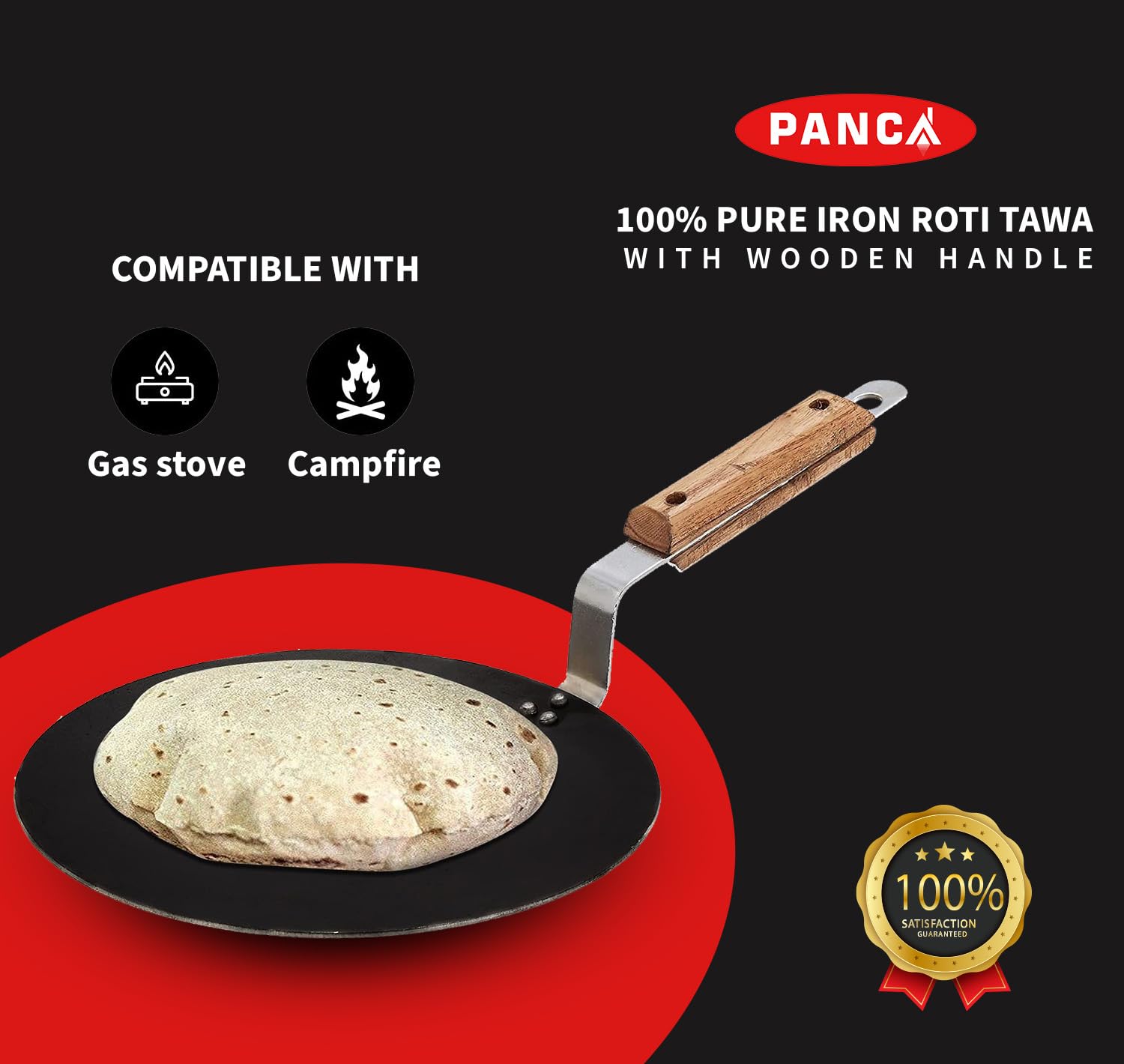 PANCA Iron tawa for Roti,Chapati,Dosa Loha Tawa with Wooden Handle Premium, 100% Toxin-Free, Long Lasting, Black