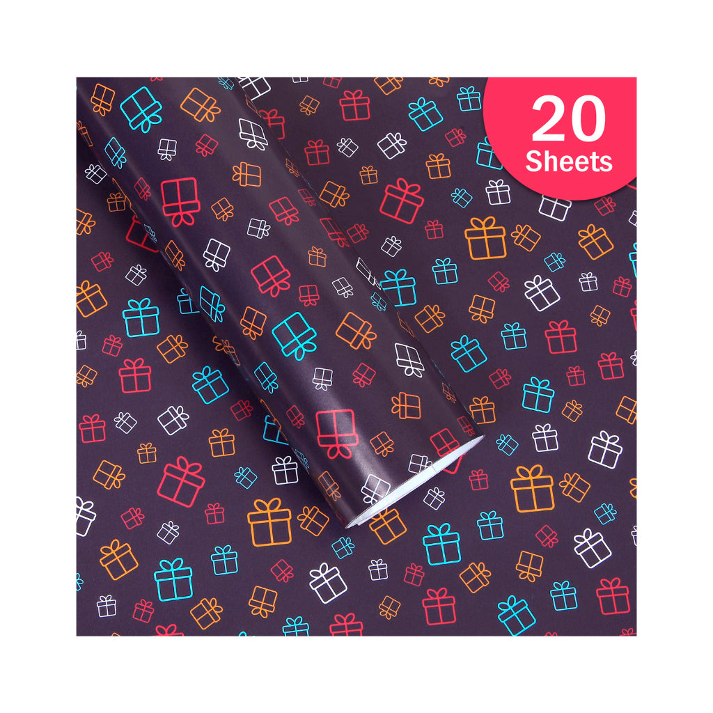 Paper Pep Blue Gift Boxes Print Gift Wrapping Paper 19"X29" Pack Of 20 Sheets