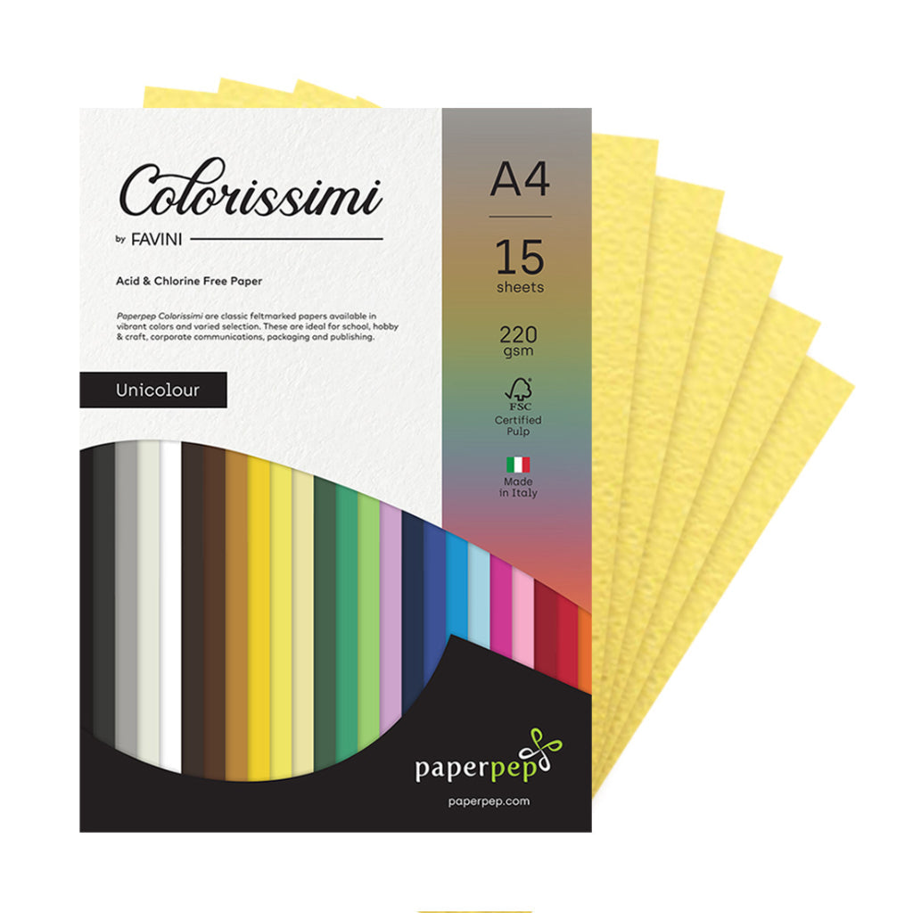 Paper Pep Colorissimi Card Stock 220Gsm A4 Girasole (Light Yellow) Unicolor Of 15 Sheets