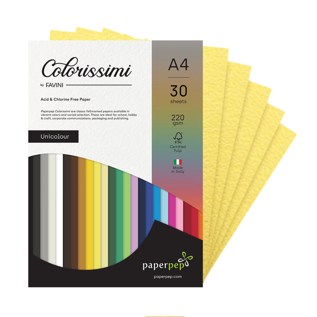 Paper Pep Colorissimi Card Stock 220Gsm A4 Girasole (Light Yellow) Unicolor Pack Of 30 Sheets