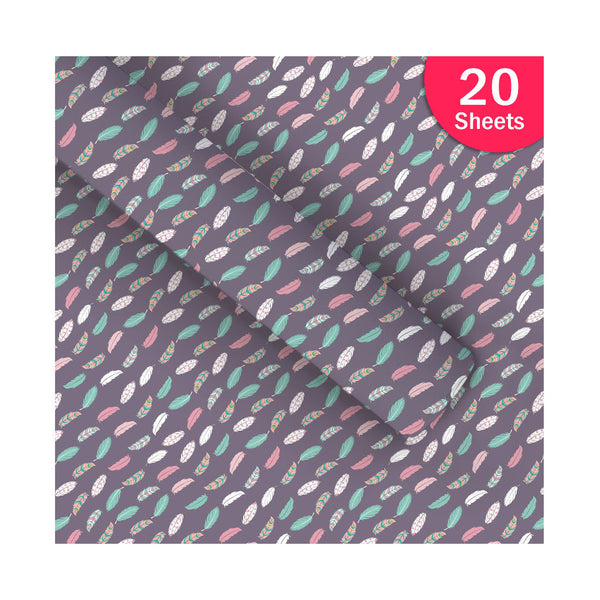 Paperpep Grey Multiple Feather Print Gift Wrapping Paper 19"X29" Pack Of 20 Sheets For Gift Packing Birthday, Anniversary, Diwali, Christmas, All Occasions & Events, Crafts, Return Gifts