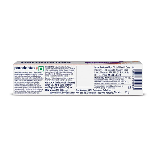 Parodontax Ultra Clean Toothpaste For Daily Protection Against Gum Problems, For Long Lasting Ultra Clean Feeling Multi Pack, 75g*2