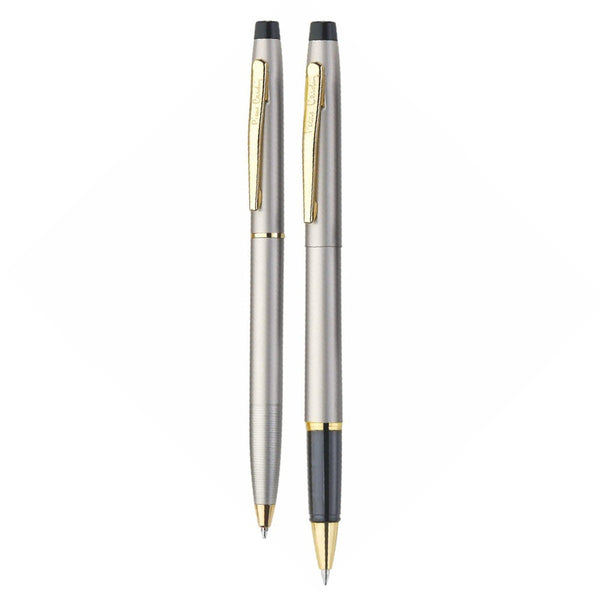 - Package Includes - 1 Ball Pen + 1 Roller Pen Set With Refill, Pack - Gift Box, Body Colour - Silver & Golden, Ink Colour - Blue, Body Material- Metal, Tip - Stainless Steel Tip.