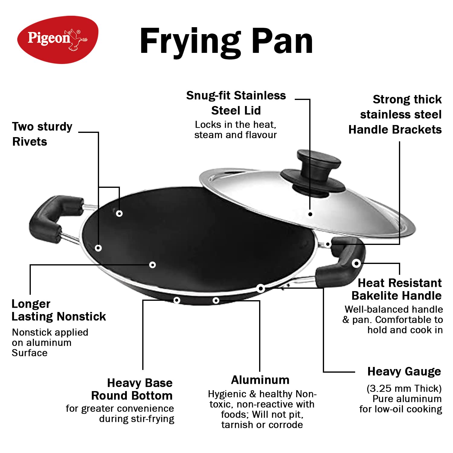 The hollowness of the cauldron of this non stick appachetty with lid is apt for preparing eponymous foods. Its spiral base accelerates quick heat transmission and provides even heat distribution resulting in uniform cooking. Furthermore, since the rounded pan heats up evenly and quickly, the entire cooking process is completed speedily. The triple-layered non-stick coating of this Pigeon appachetty with lid, which is imported from Germany, is food grade and non-toxic. Additionally, the non-stick coating is also scrape-resistant and hence you can use metal spoons and ladles while tossing and turning contents.