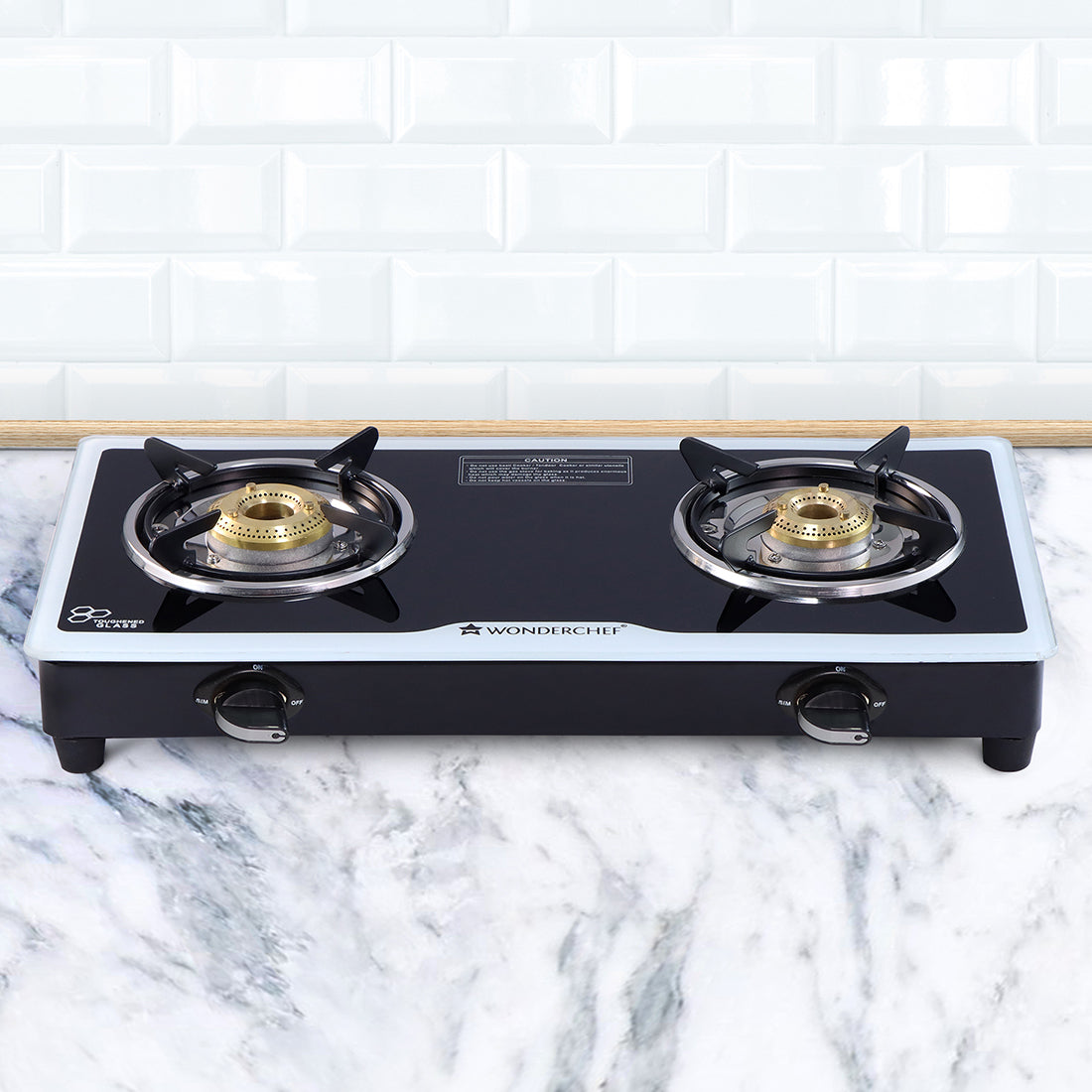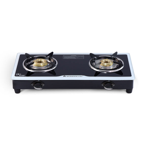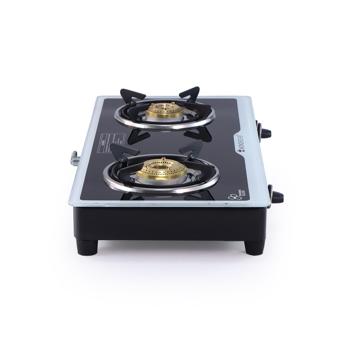 Platinum 2 Burner Glass Cooktop is a compact, spacious glass cooktop that offers a melange of performance and beauty in your kitchen. With individual pan supports, you can cook for the entire family with ease. The toughened glass top makes it convenient to clean. Stainless steel drip tray, ergonomically designed knobs, high-efficiency brass burners, powder-coated pan support, and Reliable Wonderchef Service make it a must Buy. Cooking made Practical!