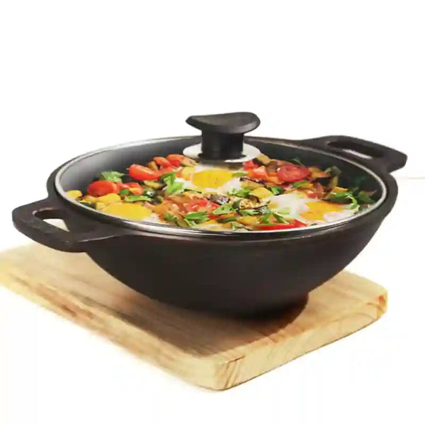 🥘COOKS ALL YOUR FAVOURITE DISHES: Use this cast iron kadai for deep frying samosa, savouries or sabzis, biriyani, curry, gravies, etc.