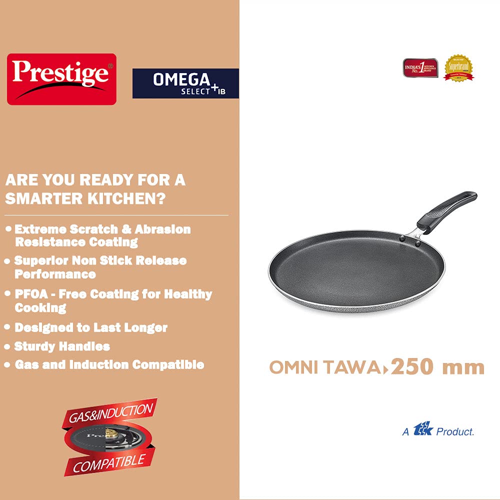 Prestige Aluminium Omega Select Plus IB Non-Stick Omni Tawa, 25 cm, Multicolour, Medium