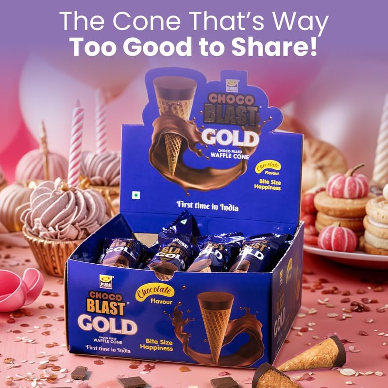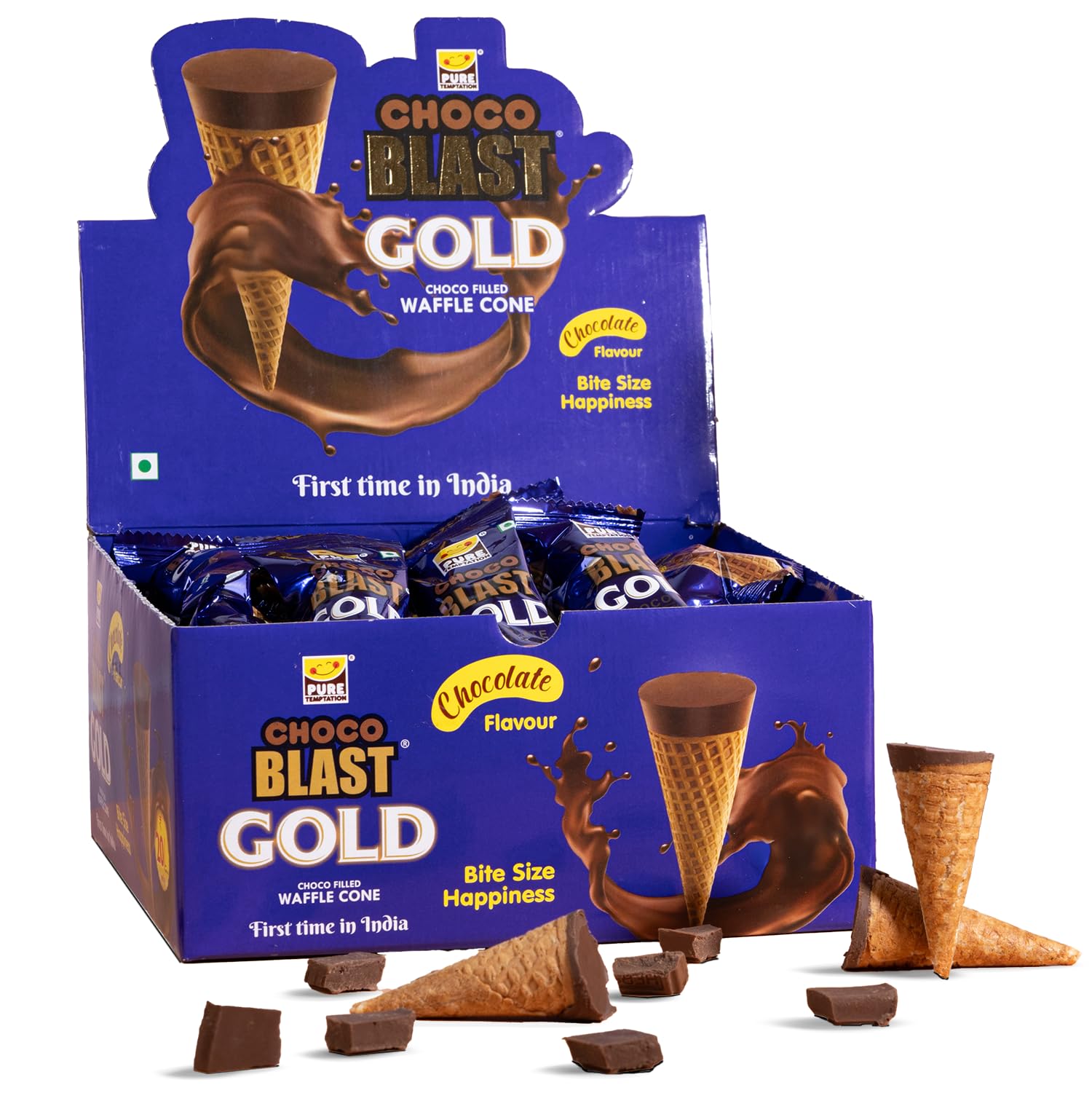 Pure Temptation Chocoblast Waffle Cones [30 Pieces Chocolate Box] Snacks for Kids & Adults - Non-Meltable Valentine Gift Box - Individually Wrapped Chocolate Cone Bites - Chocolate-Filled Waffle Cone