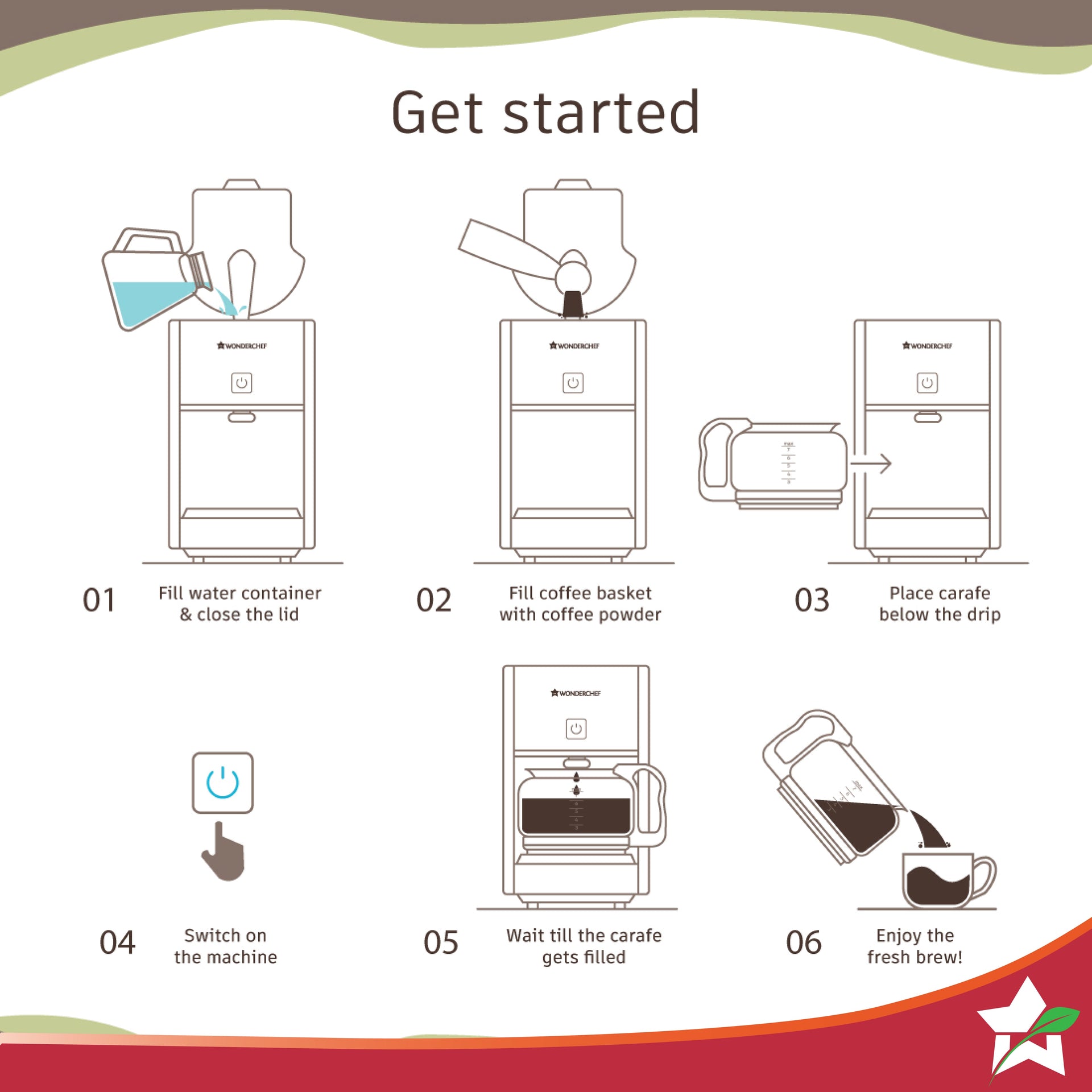 Kick-start your mornings with freshly brewed coffee. Get ground coffee that suits your taste and start brewing! Regalia Pronto Coffee Maker delivers superior taste, as it maintains the essential oils and flavour of the coffee grounds while eliminating agents that cause bitter taste. The machine is sized to brew up to 5 cups of coffee (700ml) at a time.