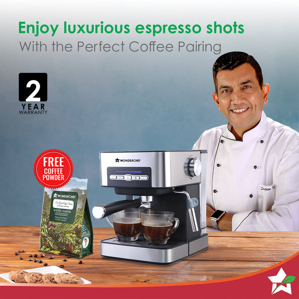 Regalia Espresso Coffee Maker 20 Bar | Ideal for Espresso, Cappuccino, Latté, Macchiato or Ristretto at Home | with Steamer Spout for Cappuccino & Latte | Professional Style Coffee | Works with Coffee Powder | 2 Years Warranty | Steel