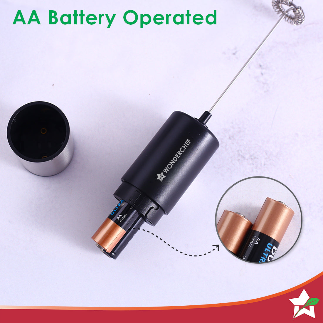 Wonderchef Regalia Milk Frother | Rich and Creamy Froth in Seconds | Stainless Steel Body & Whisk | AA Battery Operated | Blend Lassi, Cold Coffee, Gym Shakes, Whipped Cream | Easy to Clean | Black