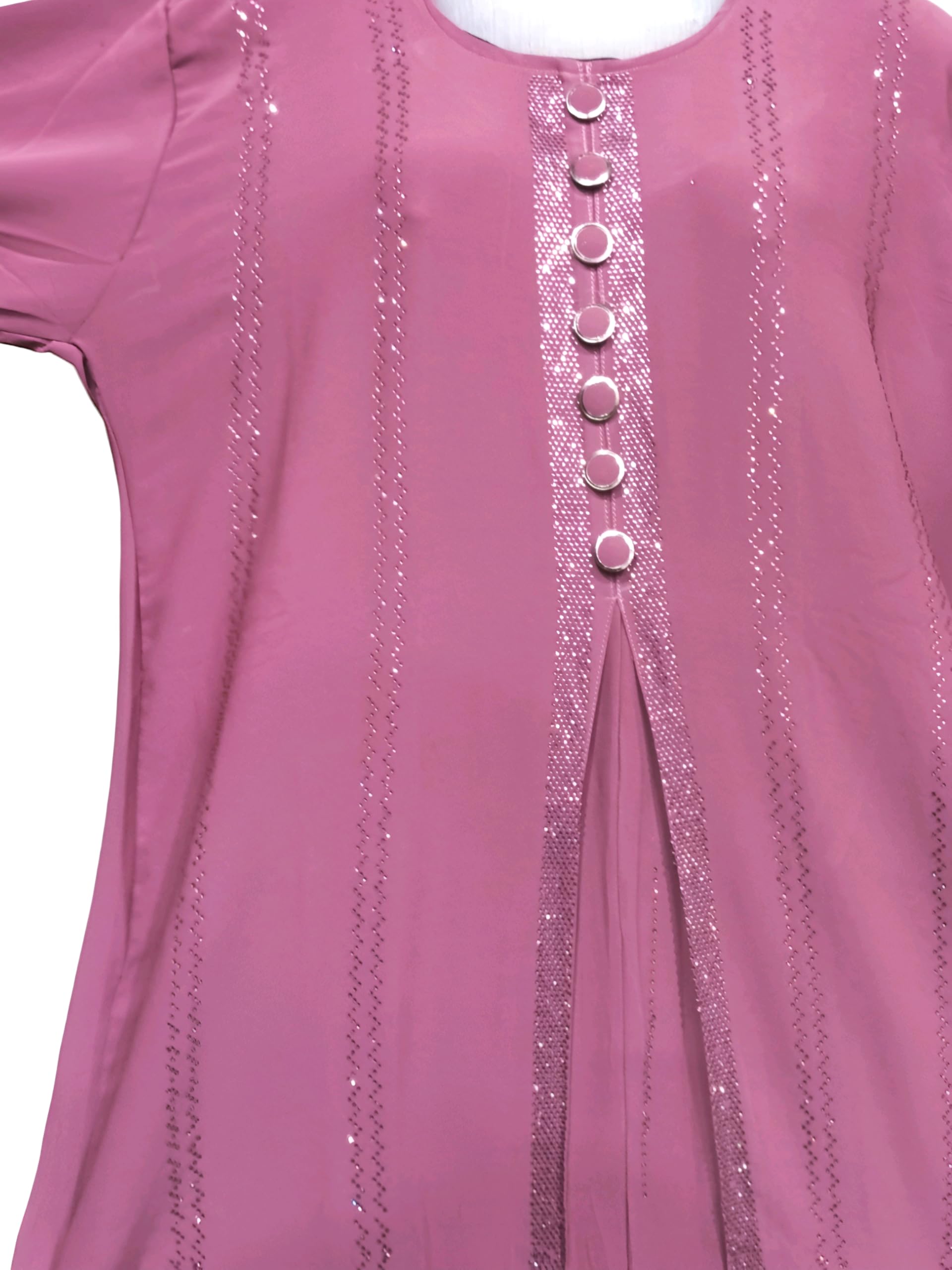 RIAYAH COLLECTION Premium Abaya Burqa with Fancy Button Design for Women, Burkha Only without Hijab (Pink)