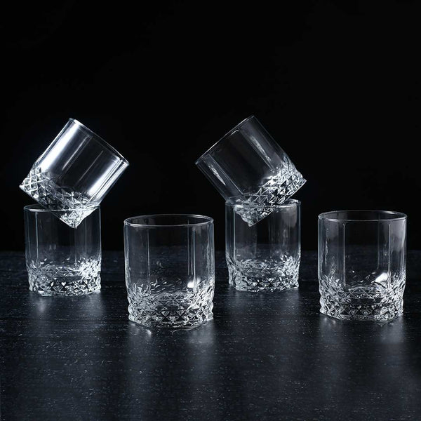 A rich drink is most enjoyed in an equally opulent glass, just like Rosa whiskey glass from Wonderchef. Pour your favourite single malt into the Rosa glass and let a magical experience consume you. The clear glass with facet cuts resembling a solitaire will surely speak volumes about your sophisticated taste. A perfect blend of modernity with a glimpse of retro.