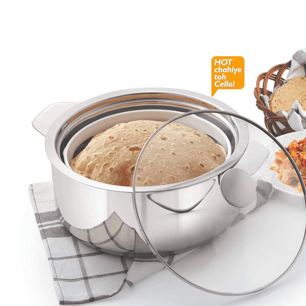 The Roti Plus Stainless Steel Casserole in a classic Silver finish offers a spacious and hygienic solution for your food storage and serving needs. This medium stainless steel casserole is designed to accommodate larger quantities of food with ease. Crafted from high-quality stainless steel, it not only ensures durability but also keeps your dishes hygienic and odorless. The added convenience of being dishwasher safe simplifies cleanup. Additionally, it comes equipped with a see-through tempered glass lid, allowing you to monitor your cooking without losing heat or flavor. With the Roti Plus Stainless Steel Casserole, you have a reliable and practical addition to your kitchen that enhances both your cooking and serving experience.
