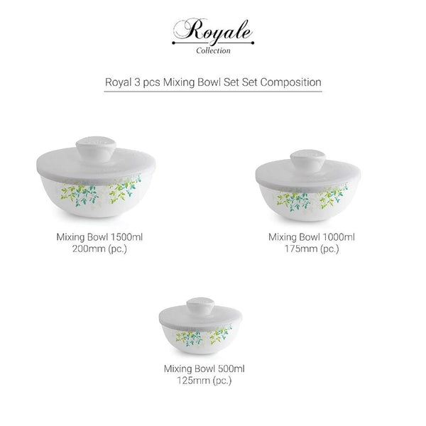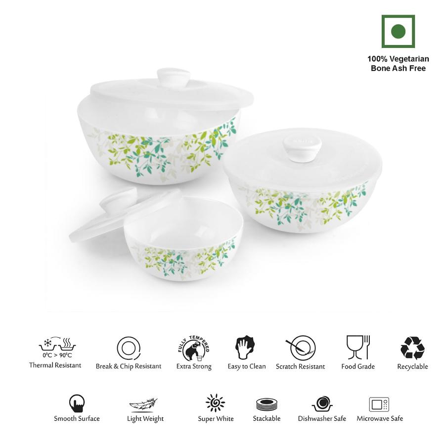 Cello Opalware Mixing Bowl Green Orchard Set offers unparalleled versatility for your kitchen needs. Ideal for food warming, mixing, storage, and serving, these bowls are designed to make meal preparation effortless. Crafted from high-quality opalware, they are thermal resistant (0 to 90 degrees Celsius) and boast superior strength with triple tempering, ensuring durability and longevity.