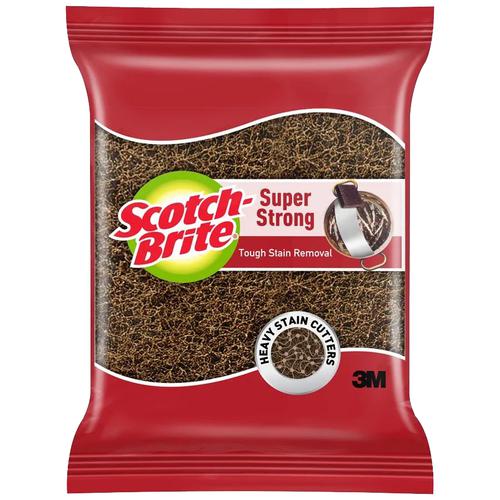 Scotch-Brite Super Strong scrub pads come with more minerals & coarser fibre to remove tough stains. Built in for easy stain removal of the sturdy tava, messy kadai and stained cooker. Features : • Engineered for tough utensils like the tava, kadai and pressure cookers • Contains more minerals & coarser fibres
