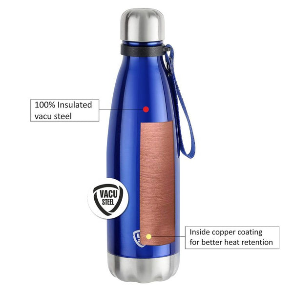 Cello's scout bottle is made of thermo seal technology. With this stainless steel water bottle from the house of Cello, you can carry chilled water or your favourite beverage conveniently. Its superior insulation performance-patented vacuum technology and food grade material keep beverages hot/cold/fresh for hours. Insulated double-walled vacuum bottle is designed for maximum temperature retention that keeps your favourite hot drinks without altering their temperatures for a prolonged period. You can avoid re-heating boiled water hence saving gas, effort and time.