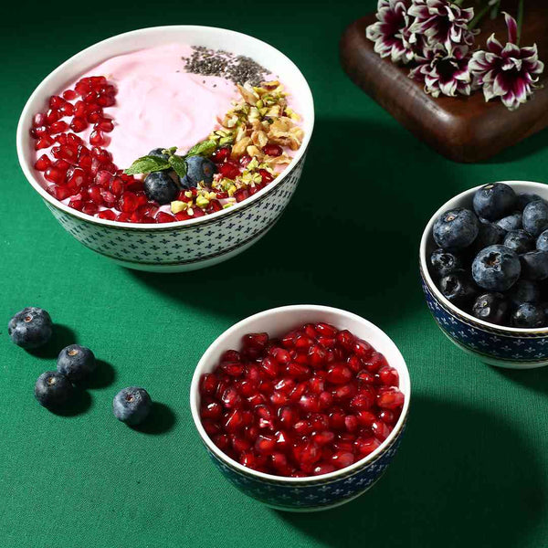 The Sicilia Royal Blue collection is the perfect balance of traditional design thought with a contemporary outlook. This collection has rich royal blue colour with real gold accents. Each piece of this collection portrays the artisan’s eye for detailing. The touch of gold rim around the royal blue colour makes every piece exude luxe. They undergo three stages of firing and stringent quality check to attain the finish. The colours and gold used are food safe. The beautifully crafted dinner set is a perfect choice to gift your loved ones.
