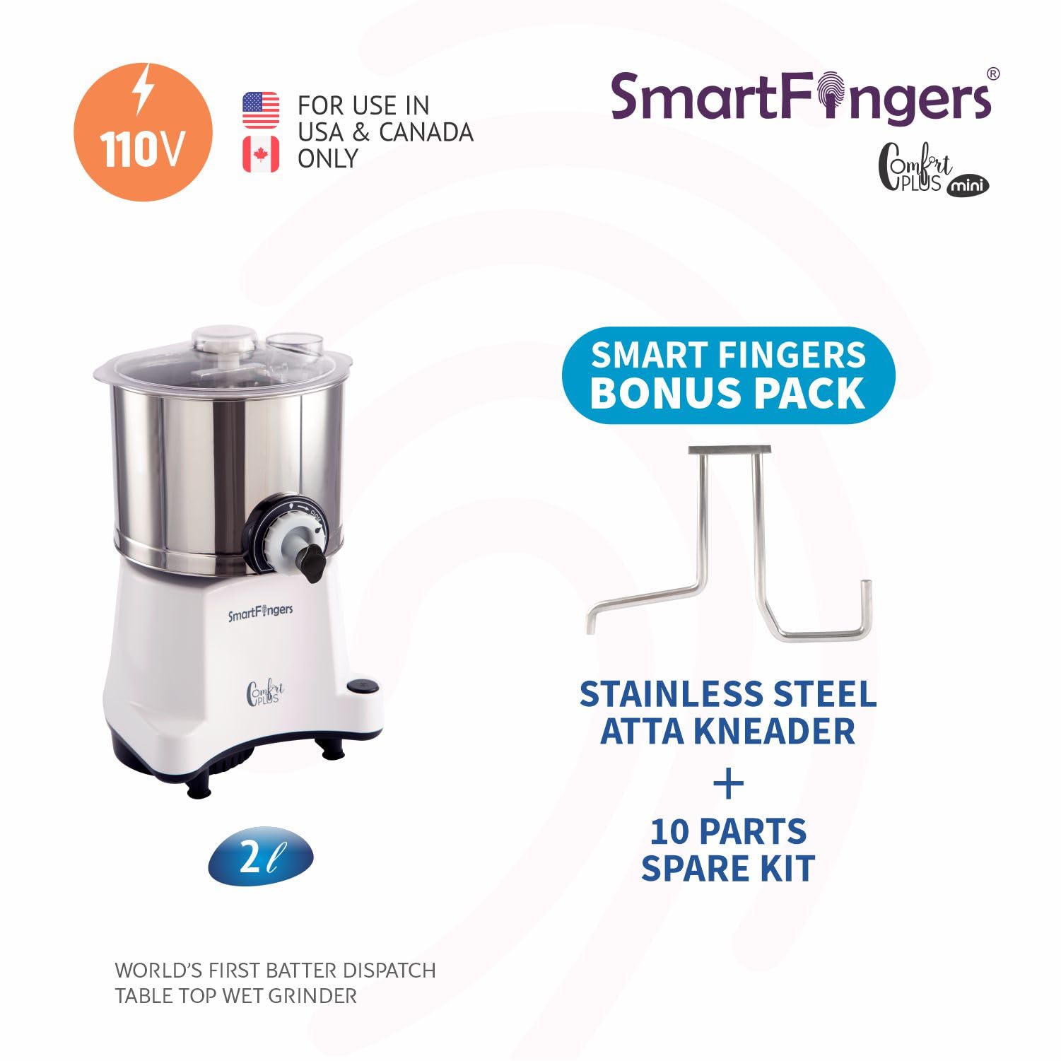 SmartFingers Stainless Steel Comfort Plus Table Top Magic Wet Grinder 110V 60Hz (2 L) For Usa Canada And Japan Only, White