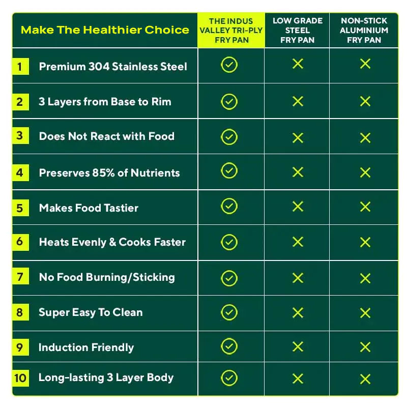The Indus Valley’s TurboCukTM Triply Stainless Steel Frying Pan/Skillet will give you a great, effortless cooking experience, without compromising on your health and ease of cooking.