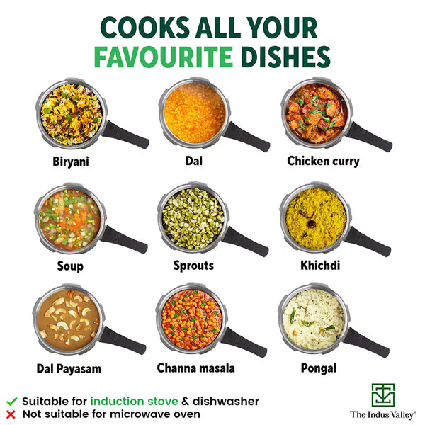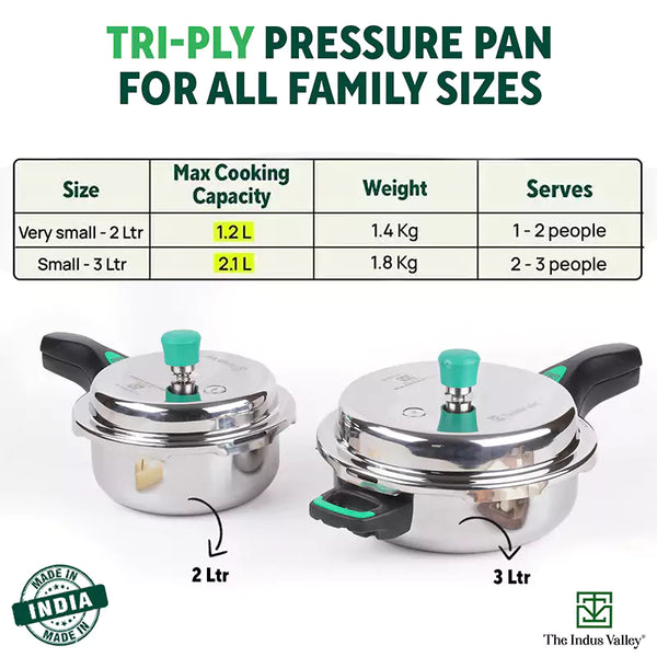 π THE BEST CHOICE:Β Trust this triply cookware to be the best cooker in India that you will ever came across. Whatβs more is that it comes with a 5 year warranty. Buy pressure pan from The Indus Valley and get the best pan price online.