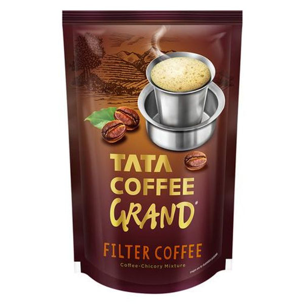 Introducing Tata Coffee Grand Filter Coffee which leverages the deep heritage of Tata in coffee and delivers an intensely rich, fresh, and aromatic coffee. Get a fresh start to your mornings with a sip of freshly brewed coffee and be ready for an adventurous ride all day long. Containing coffee, chicory and flavour locked decoction crystals, this coffee is roasted and grounded to perfection. Usage: Add 2 teaspoons of Filter Coffee into the upper portion of the filter. Add 50ml of hot water and cover it. Wait for 15 minutes for the decoction. Mix with hot milk and sugar. Enjoy a rich filter coffee experience.