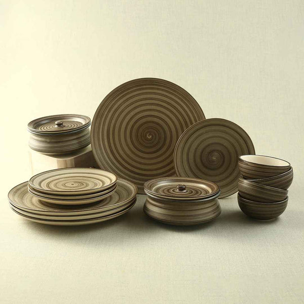 The Teramo dinner set comes with a spiral print design set in rustic muddy brown palette. Enjoy hearty meals with friends and family.