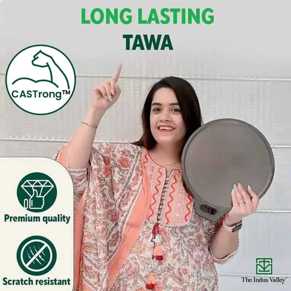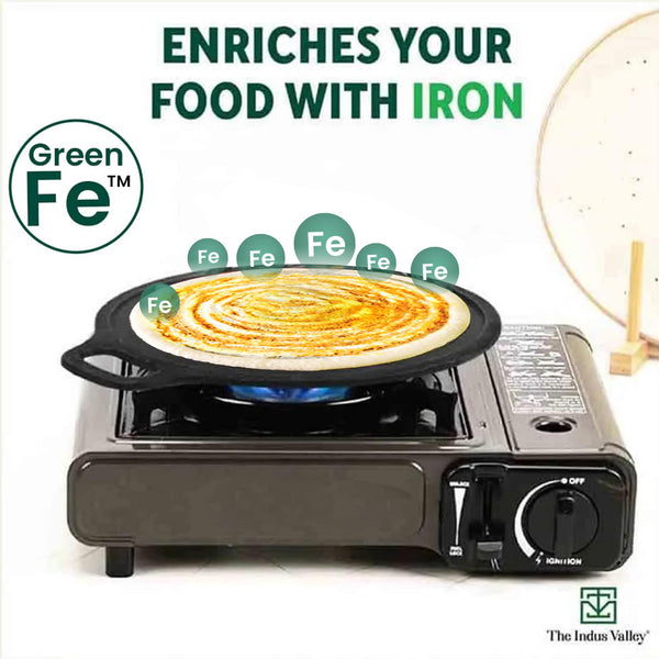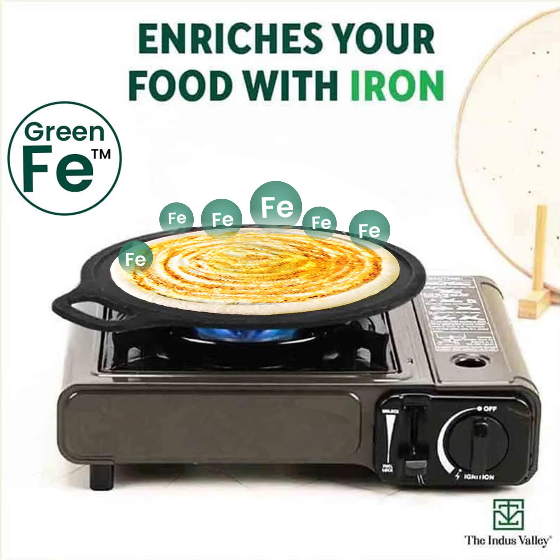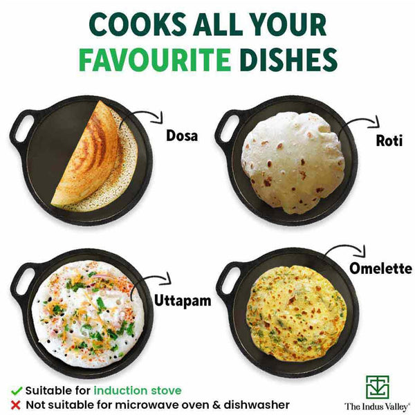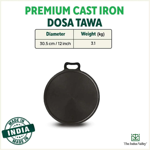 The Indus Valley Super Smooth Cast Iron Tawa for Dosa/Chapathi + Free Spatula | 30.5cm/12 inch, 3kg | Induction Friendly | Naturally Nonstick, Pre-Seasoned Tawa, 100% Pure & Toxin-Free