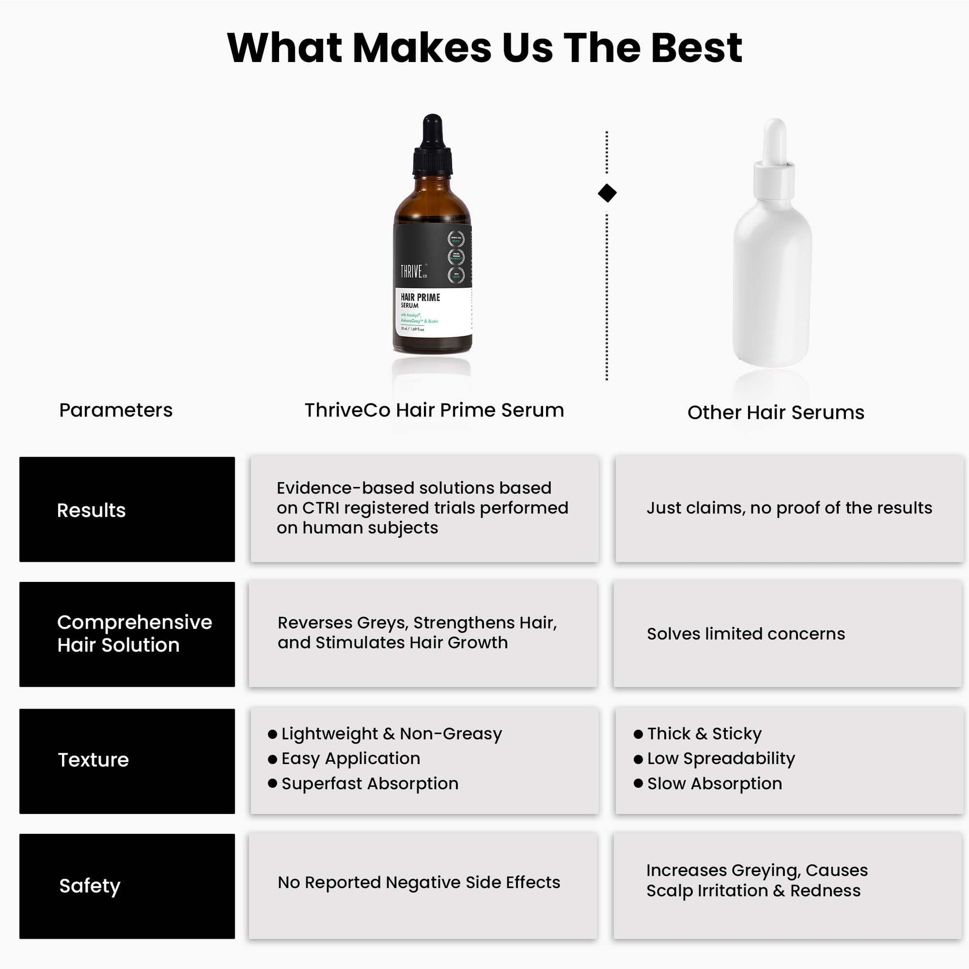 ThriveCo Anti-Grey Hair Prime Serum | Reverses & Limits Hair Greying | Arcolys + Biotin + Black Tea Extract | Light-Weight, Non-Sticky & Odourless | For Men and Women | 50 Ml