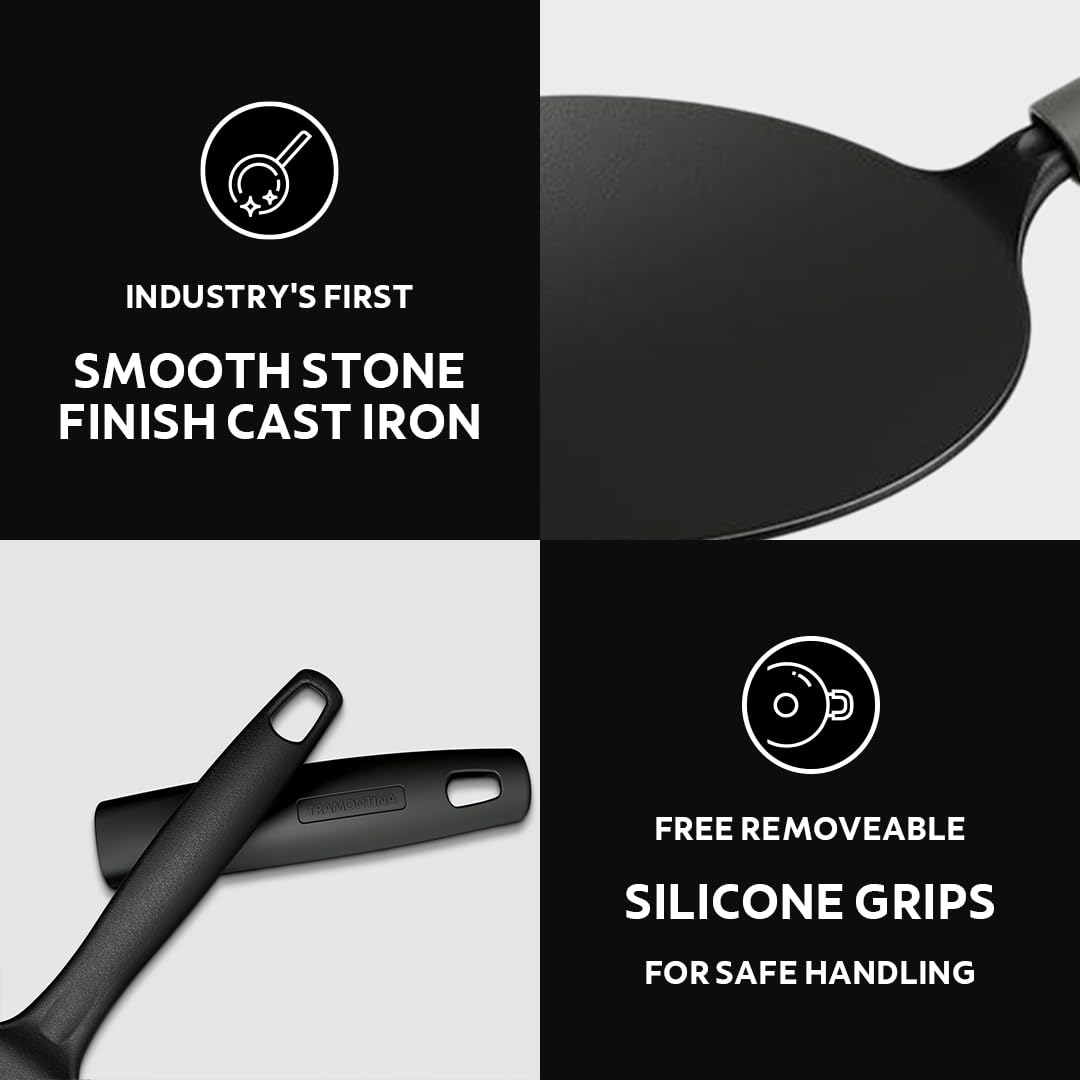 TRAMONTINA Titanex 26 cm Pre-Seasoned Cast Iron Roti Tawa – Non-Toxic, Easy Hold Non-Slip Heat-Resistant Grip, Superior Stone Finish, Excellent Heat Retention & Even Heating, Durable & Easy to Clean