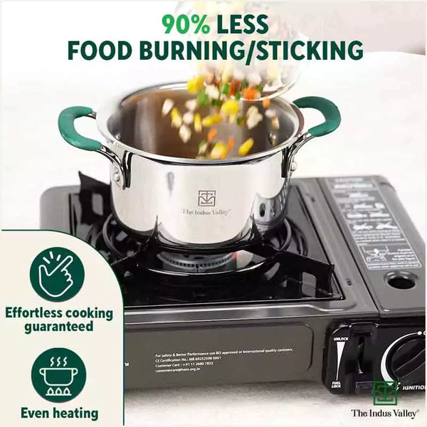 💪100% TOXIN-FREE: Meet The Indus Valley’s TurboCukTM Triply Stainless Steel Casserole/Biryani Pot/Stock Pot/Sauce Pot/Dutch oven - with Stainless Steel lid and Silicone cool handles. It is truly healthy!