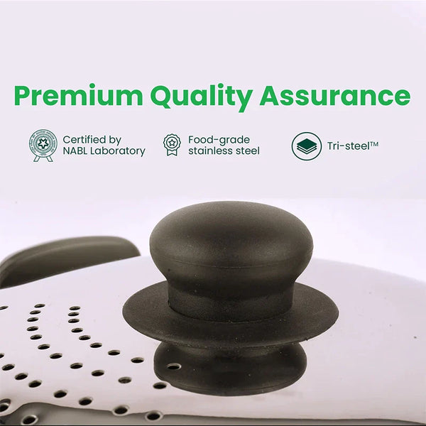 ✅PREMIUM QUALITY: The multi-pot stainless steel strainer pot with lid is made of high-quality stainless steel and has been certified by the NABL Laboratory.