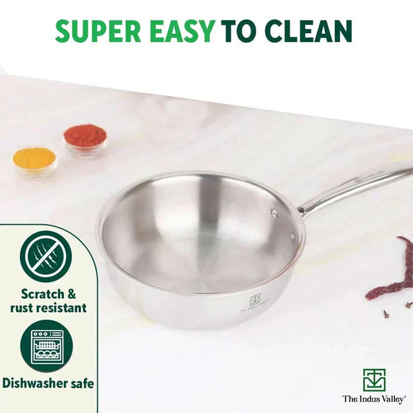 🥘COOKS ALL YOUR FAVOURITE FOOD: Best in even heat distribution, the stainless steel pan is really useful for frying puris, sauteing or stir-frying veggies, cooking gravies, halwa and more.
