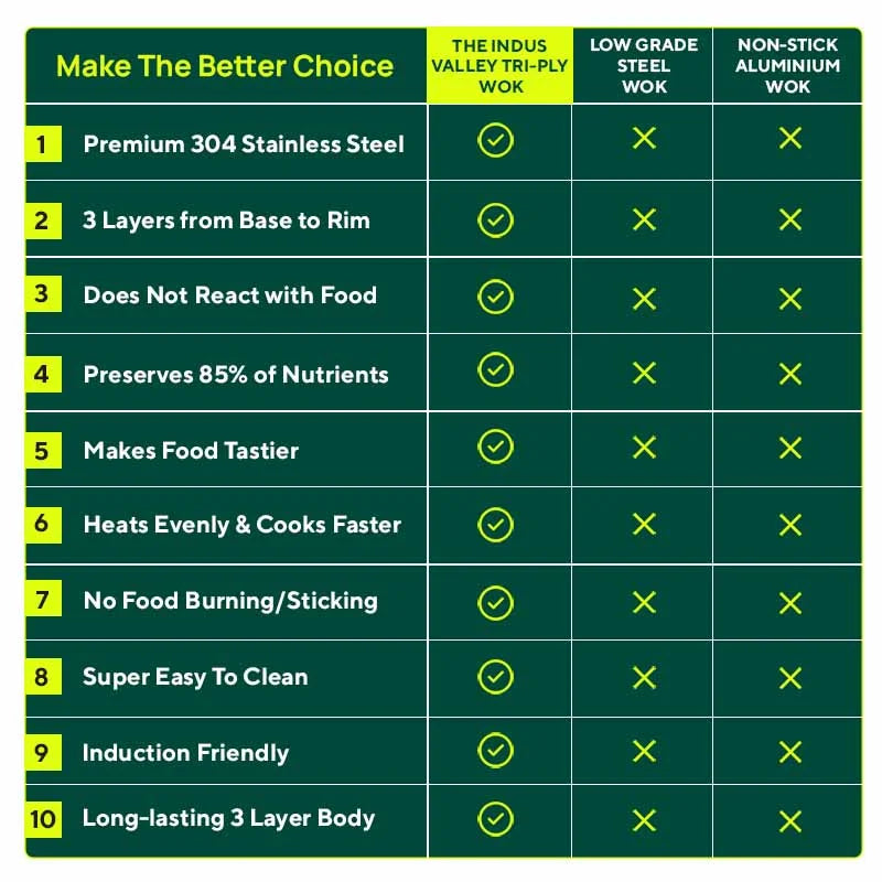 TurboCuk Tri-ply Stainless Steel Wok/Fry Pan+ Steel Lid, Premium Quality, 3 Layer Thick Body, 100% Toxin-free, Non-stick, Induction & Gas, 1.8/2.3L, 1.3/1.4kg