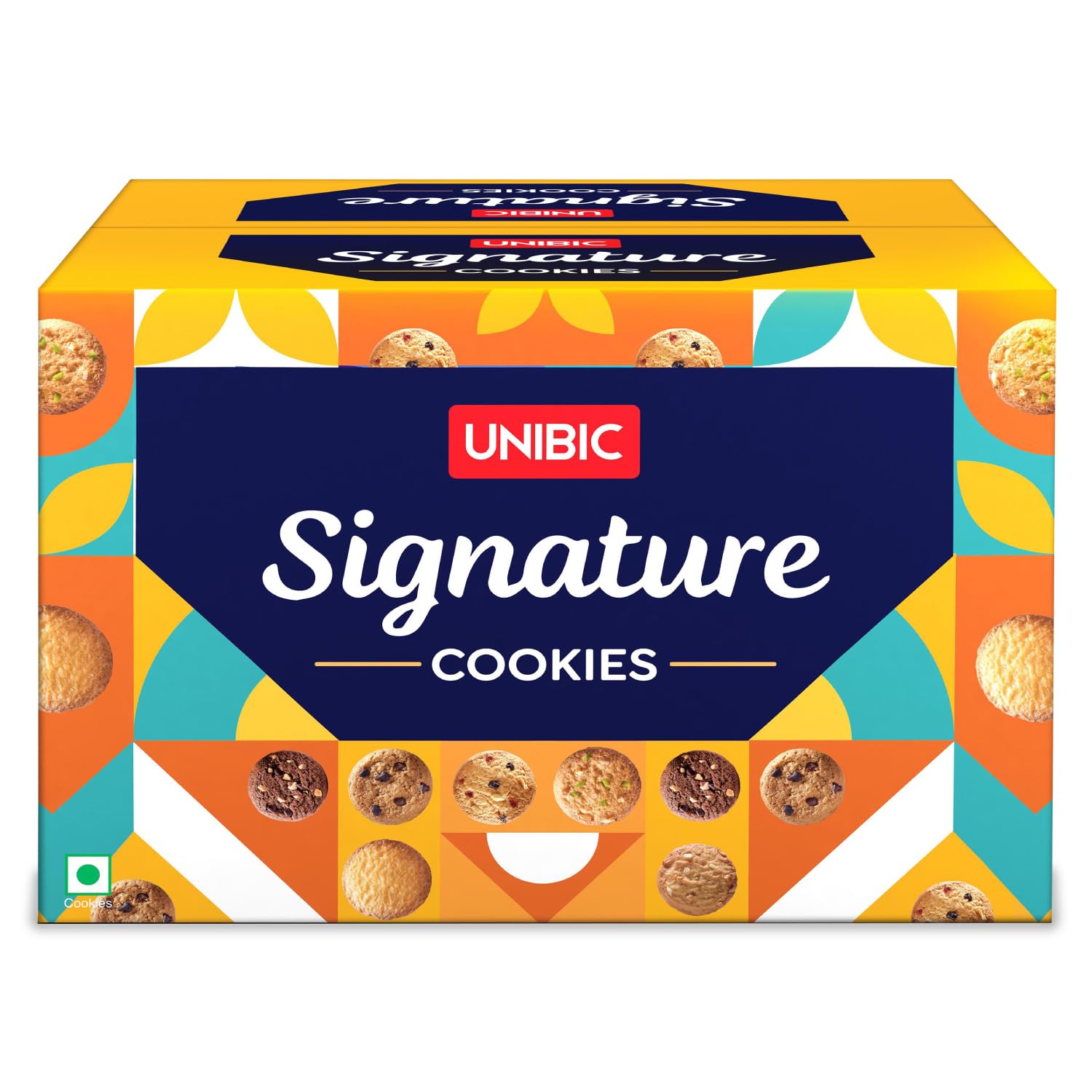 Indulge in Unibic's Signature Collection Cookies, featuring a delectable Nutty Delight Combo of Cashew Nut, Choco Nut, and Fruit & Nut Cookies. These bakery-fresh cookies are perfect for snacking anytime, while their single-use packets make them ideal for on-the-go. Made from 100% organic ingredients, these cookies are a guilt-free treat for your whole family.