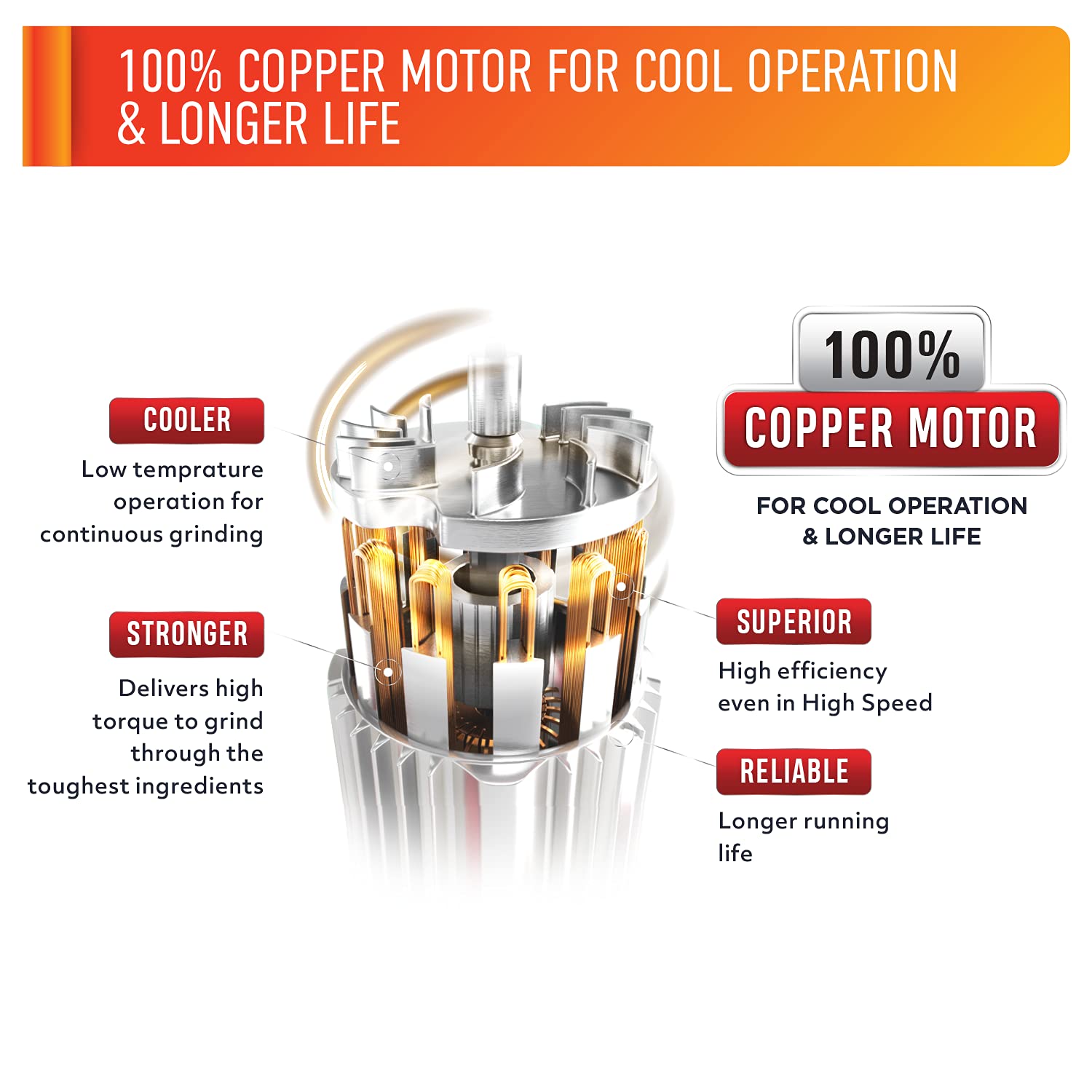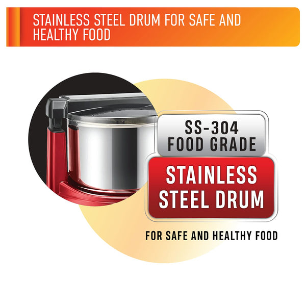 USHA Colossal DLX Wet Grinder 150 W, 2 LTR, 100% Copper Motor and Dual Flow Breakers for Faster, Smooth Batter with Atta Kneader and Coconut Scrapper (Red)