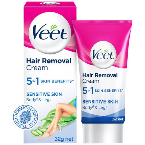 Get the smooth skin and the freedom to wear any look, any time with Veet. Veet Hair Removal Cream for Sensitive Skin, enriched with Aloe Vera and Vitamin E, is the right solution when going to the salon is not an option. It effectively removes even short stubborn hair and leaves skin moisturized for up to 24 hours*. It can be used on legs, arms, bikini line and underarms for a perfectly finished hair-less skin. Veet Hair Removal Cream for Sensitive Skin gives you perfect hair removal results in up to 10 minutes. Easy steps and the special spatula inside the pack helps you uproot hair in one easy move. Before using this product, please read the pack precautions carefully.