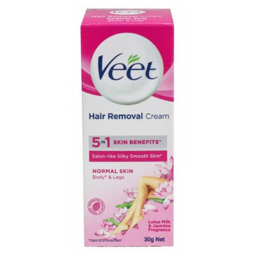 Get the smooth skin and the freedom to wear any look, any time with Veet. Veet Hair Removal Cream for Normal Skin, enriched with Lotus Milk & Jasmine fragrance, is the right solution when going to the salon is not an option. It effectively removes even short stubborn hair and leaves skin moisturized for up to 24 hours*. It can be used on legs, arms, bikini line and underarms for a perfectly finished hair-less skin. Veet Hair Removal Cream for Normal Skin gives you perfect hair removal results in just 3 to 6 minutes. Easy steps and the special spatula inside the pack helps you uproot hair in one easy move. Before using this product, please read the pack precautions carefully.