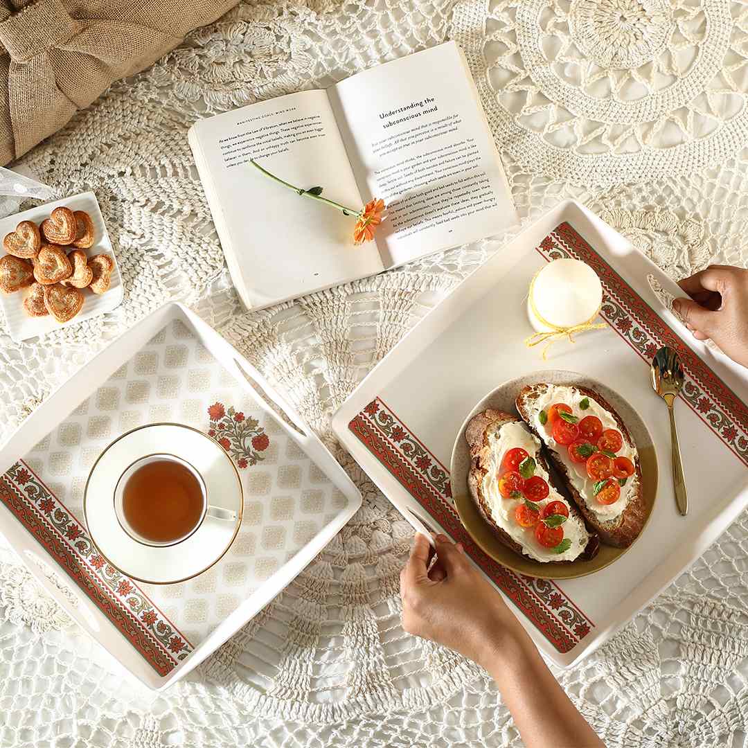 The set of trays in the classic floral design merging with intricate pattern in hues of red and green make these trays of the Venice Collection brim with elegance. Add character to your serving with these trays. Superior finish and quality, flaunt it to your guests or gift to someone with a taste as unique as yours. Our collection combines an eye-catching charming look with vintage colours represented in contemporary art.