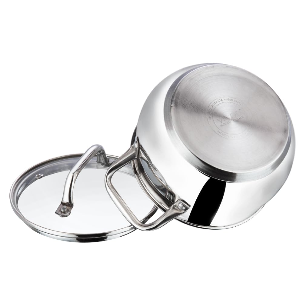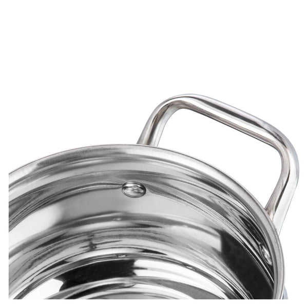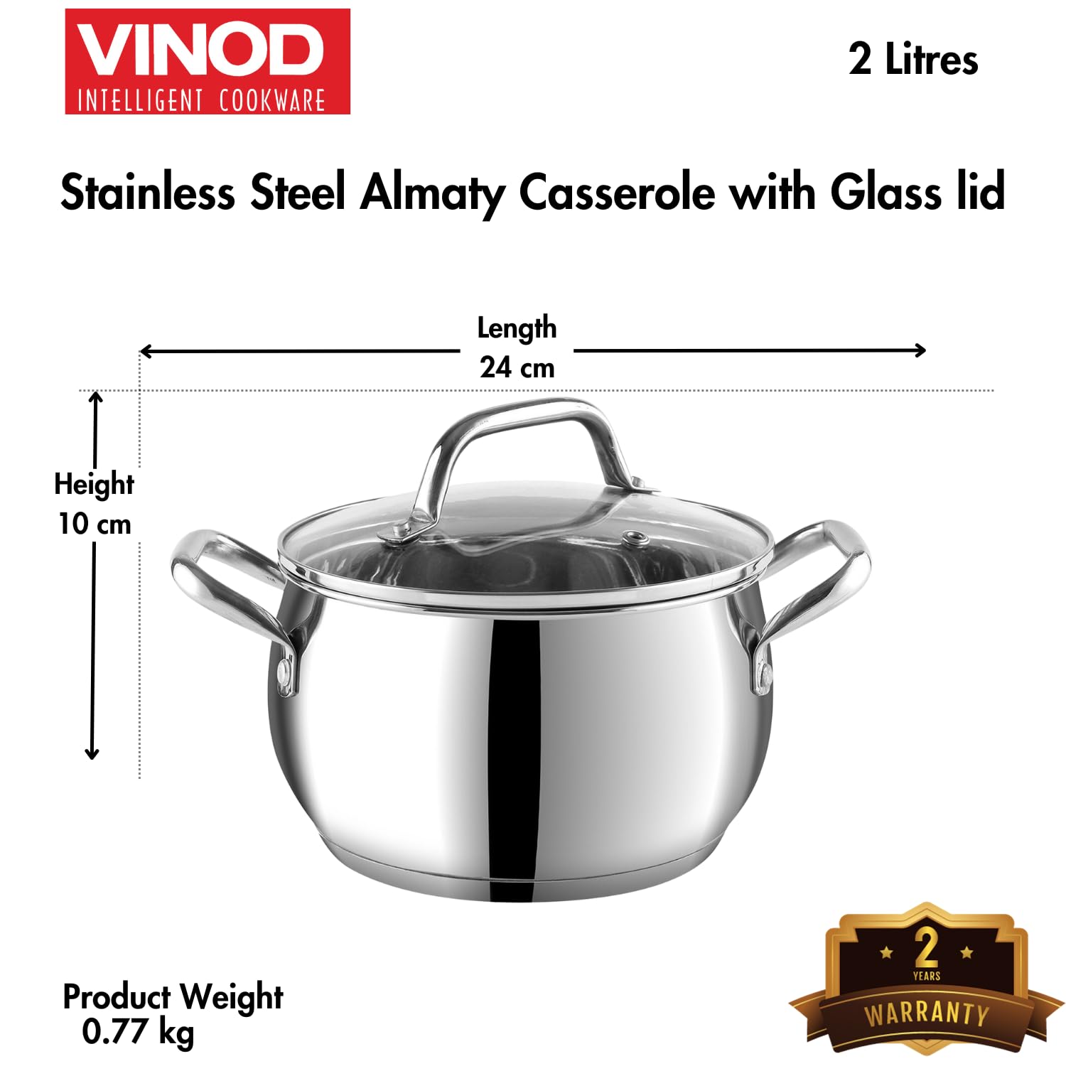 Details: Stylish yet practical this stainless steel Almaty cook and serve casserole comes with an intelligent belly shape design that is perfect for stiring. A SAS bottom containing an aluminium core ensures even heat distribution so your food cooks thoroughly and does not burn. Made from food grade high quality, thick stainless steel for longer use. To ensure uniform and faster cooking an inner layer of food safe AISI 304 grade stainless steel sandwiches a layer of high quality virgin aluminium. The baseΒ layer of AISI 430 grade magnetic stainless steel makes the cookware induction compatible. This saucepot comes with handles that are designed to provide maximum comfort and durability during use. The glass lid with a steam vent facilitates faster cooking and easy monitoring during the cooking process. It is compatible across all heating platforms like gas, induction, ceramic, infrared and hotplate. Ideal for cooking stews, soups and pastas, as well as simmering, boiling and making sauces.