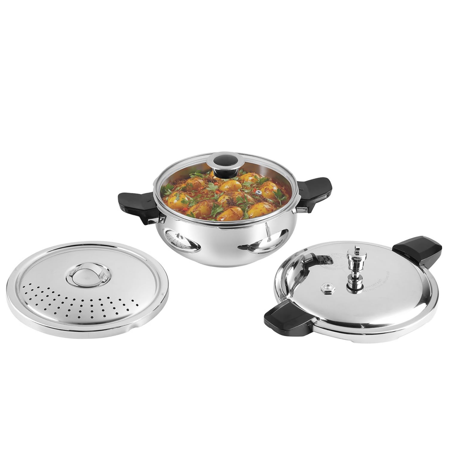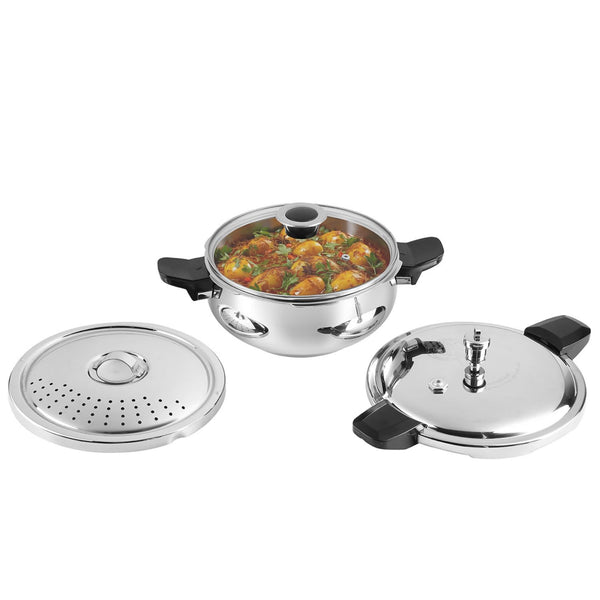 Details: Ultra Hygienic: A perfect mirror finish gives you an inside smoothness where no food particles get stuck. What is more, acidic foods like tamarind or tomatoes will never corrode stainless Steel ensuring you hygienic, contamination free cooking.