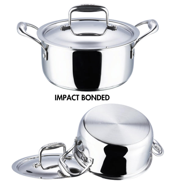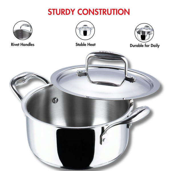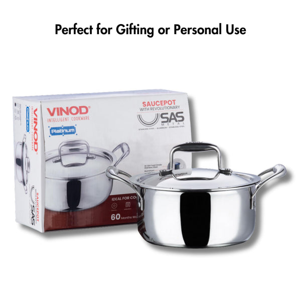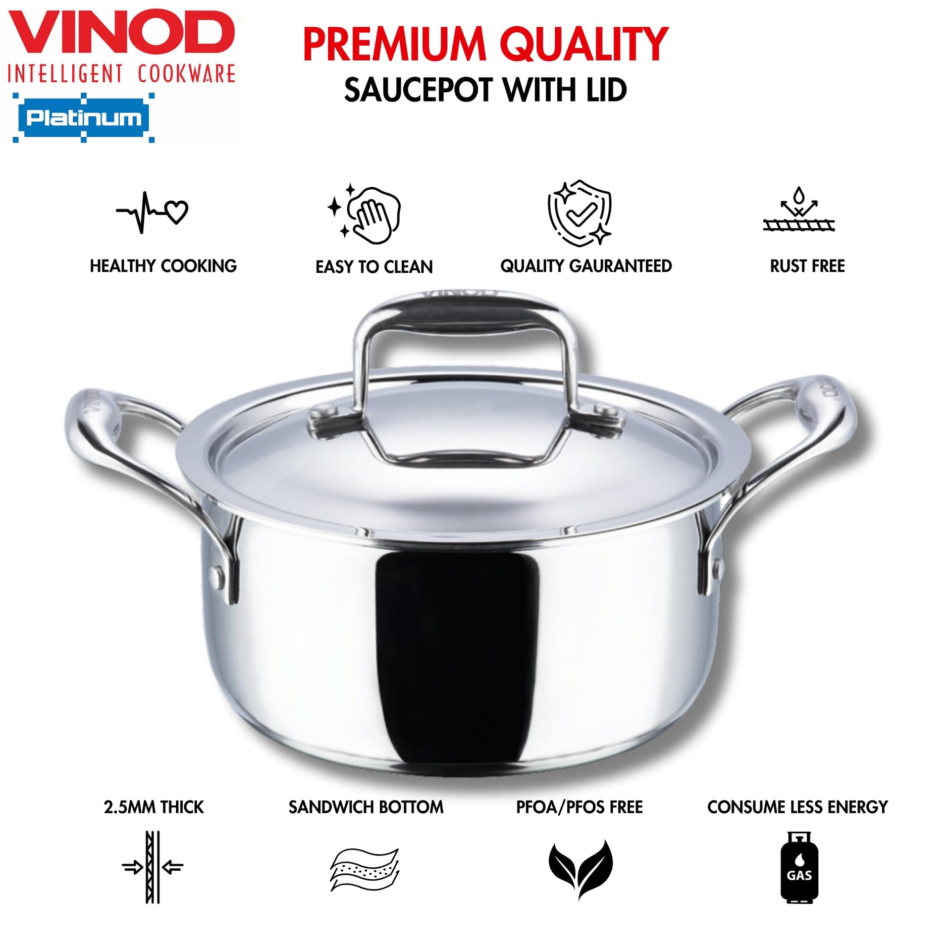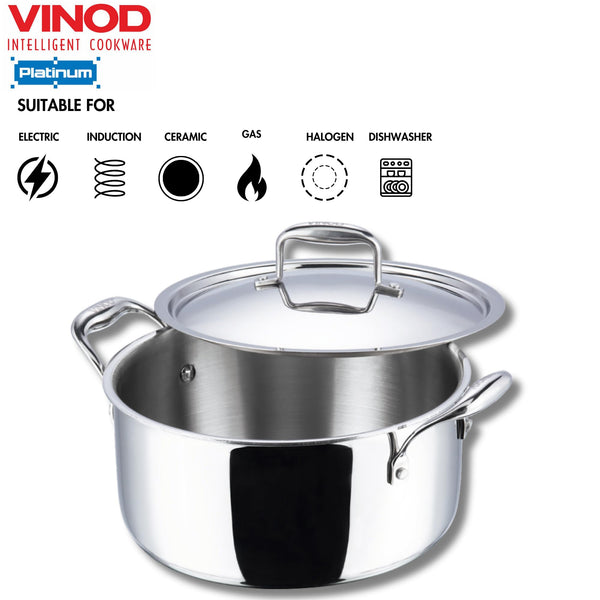 Vinod Platinum triply stainless steel series is made up with SAS technology, which is a triple layer construction of stainless steel, aluminium and stainless steel.