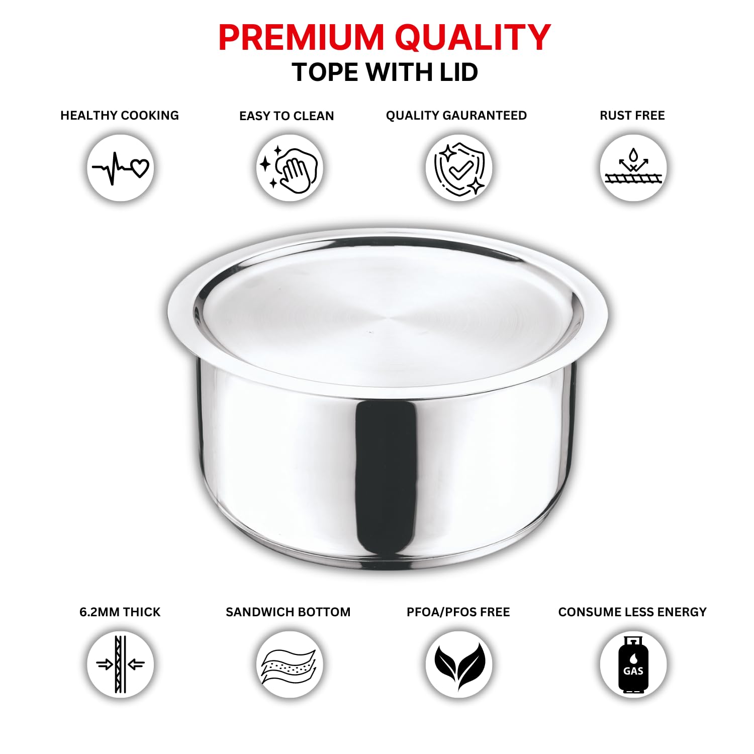 Details: Convenient, durable and easy to use. The tope enables you to cook or boil different food items. It is made up of food grade 18/8 stainless steel which is hygienic and easy to clean. The tope is easy to store and can be stacked one on top of the other. It is both gas stove and induction compatible.