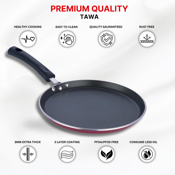 - 𝐕𝐄𝐑𝐒𝐀𝐓𝐈𝐋𝐄 𝐒𝐈𝐙𝐄: E: Measuring 28cm in diameter, this tawa is perfect for cooking a variety of dishes, from dosas and pancakes to omelettes and stir-fries, making it a versatile addition to any kitchen.