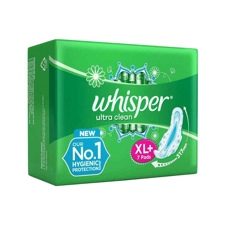 Whisper Sanitary Pads - Ultra Clean XL+ Wings, 7 Pads