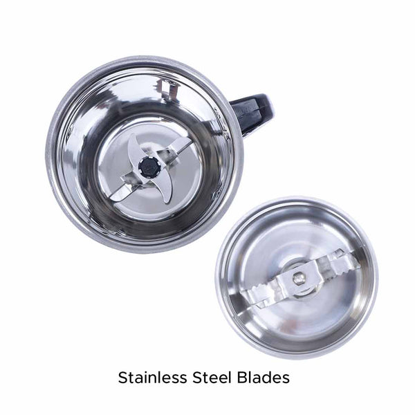 - Superior quality stainless steel blades for smooth wet and dry grinding of ingredients