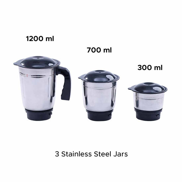 - 3 jars of high-grade stainless steel with flow breaker for easy grinding, blending and making chutneys. Comfortable jar handles for easy operation