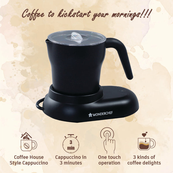 Wonderchef Cuppaccino Coffee Maker 550W | Coffee Machine for Home | Cappuccino from Instant Coffee in 3 Minutes | Professional Grade Froth | Hot Chocolate, Cold Coffee | Induction based brushless movement | 2 Years Warranty | Black