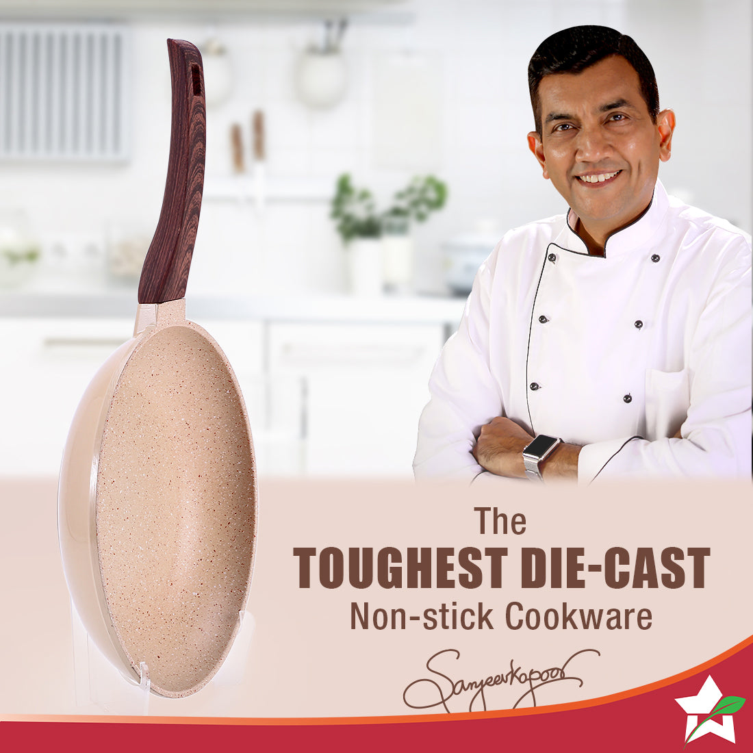 Duralife pan features an exquisite ivory colour matched with a dark wood-finish handle to add a dash of flair to your kitchen.